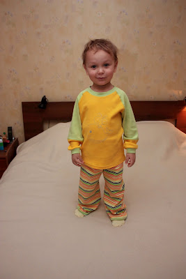 А из остатков желтого интерлока.. сшилась еще одна пижамка Лешке :)